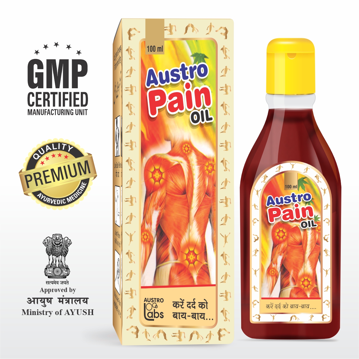 “Austro Pain Oil is a potent blend of herbal extracts and oils, including Ashwagandha, Nirgundi, and Ajwain, carefully formulated to provide relief from muscular and joint discomfort. With the goodness of natural ingredients like Mustard Oil, Sesame Oil, and Gandhapura Oil, this oil offers a soothing and warming effect for targeted pain relief.